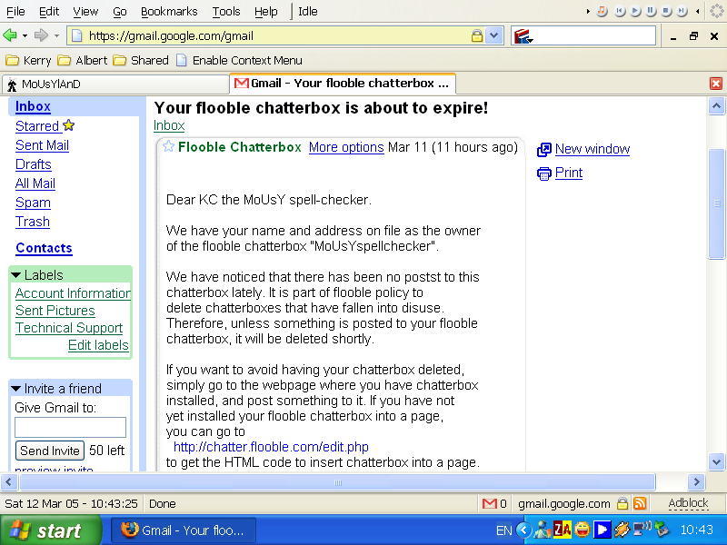 of the flooble chatterbox “MoUsYspellchecker”.We have noticed that there has been no postst to this